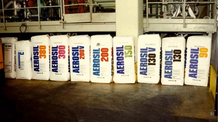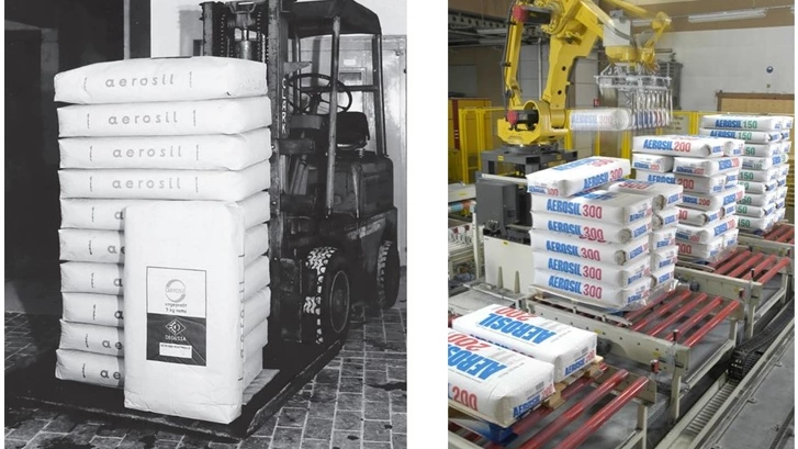 1996年:AEROSIL®新包装,颜色鲜亮的袋装设计,在仓库内引人注目。