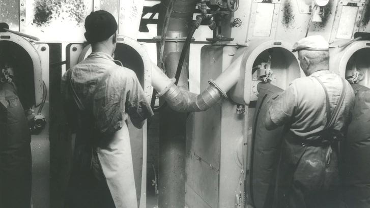 20世纪50年代的二氧化硅生产:此种转筒干燥机用于干燥韦瑟灵基地生产的二氧化硅。